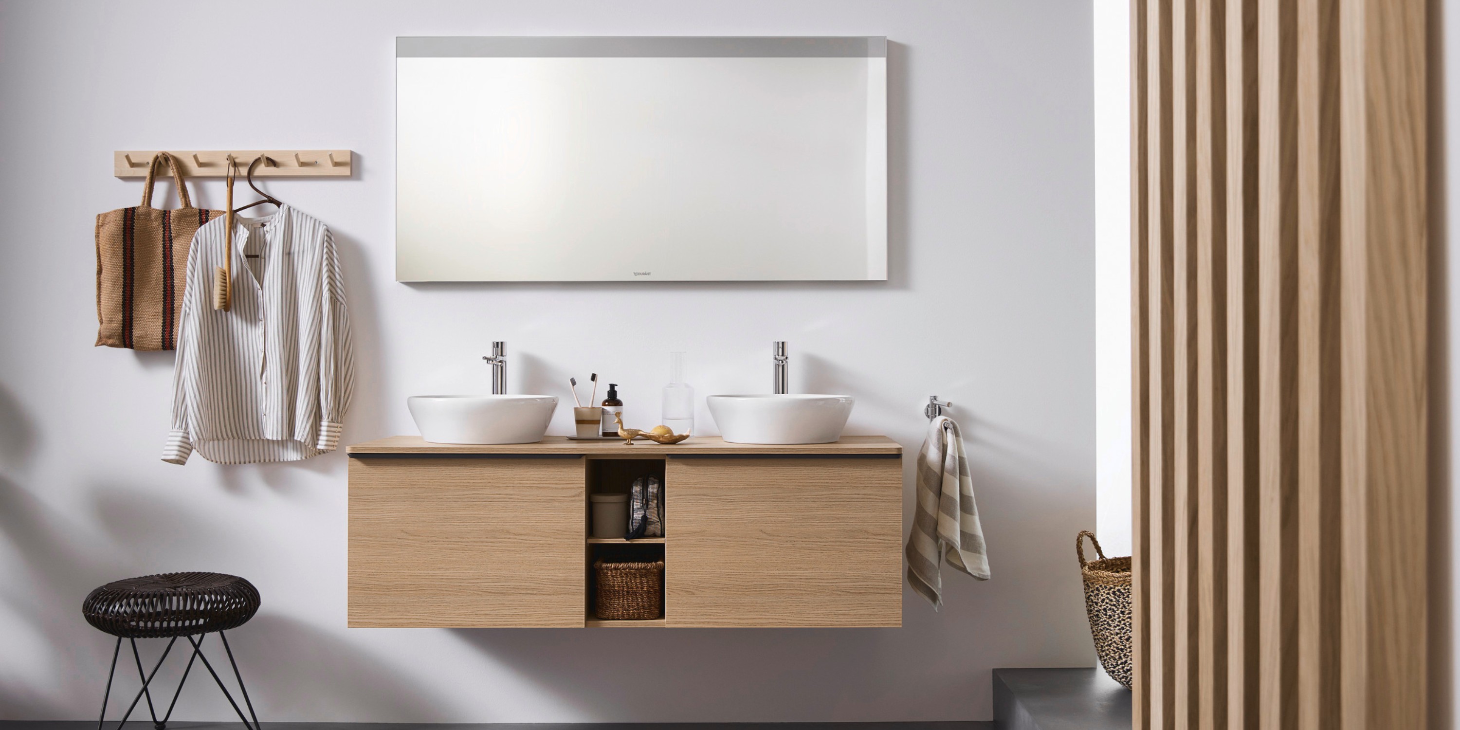Eine Möglichkeit, zusätzliche Ablageflächen und Stauraum am Waschplatz zu schaffen, sind Einbauwaschbecken und Möbelwaschtische. Aber auch die breite Auswahl an Duravit Badmöbeln bietet Abhilfe bei Platzmangel.