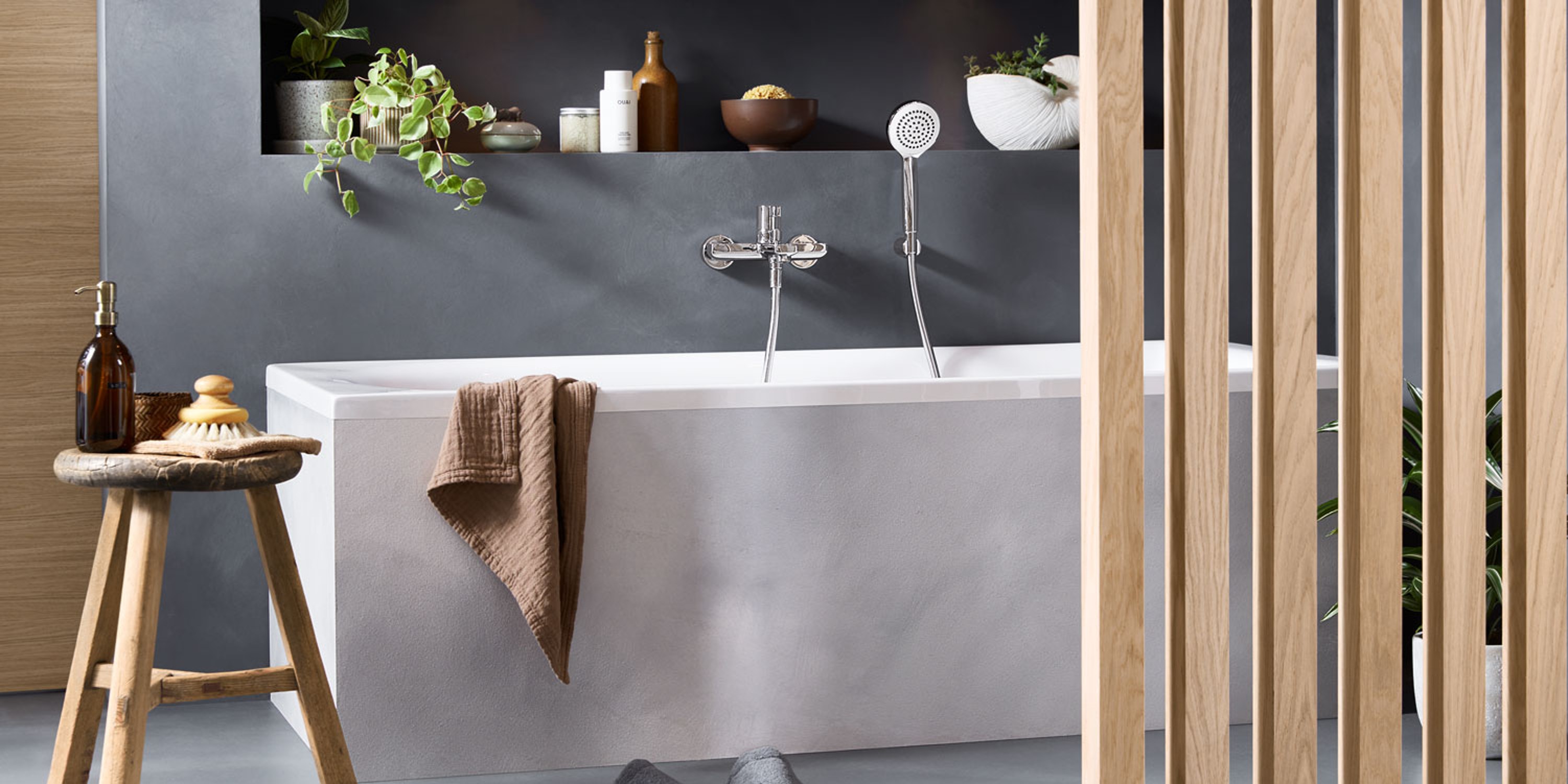 For the ultimate wellness feeling, nothing beats a warm soak in the bath. The bathtub is the focal point of the bathroom: practical, yet engineered for comfort and relaxation. Add an aesthetic touch with a statuesque freestanding tub or retrofit an alcove tub with a deep bathing well.
